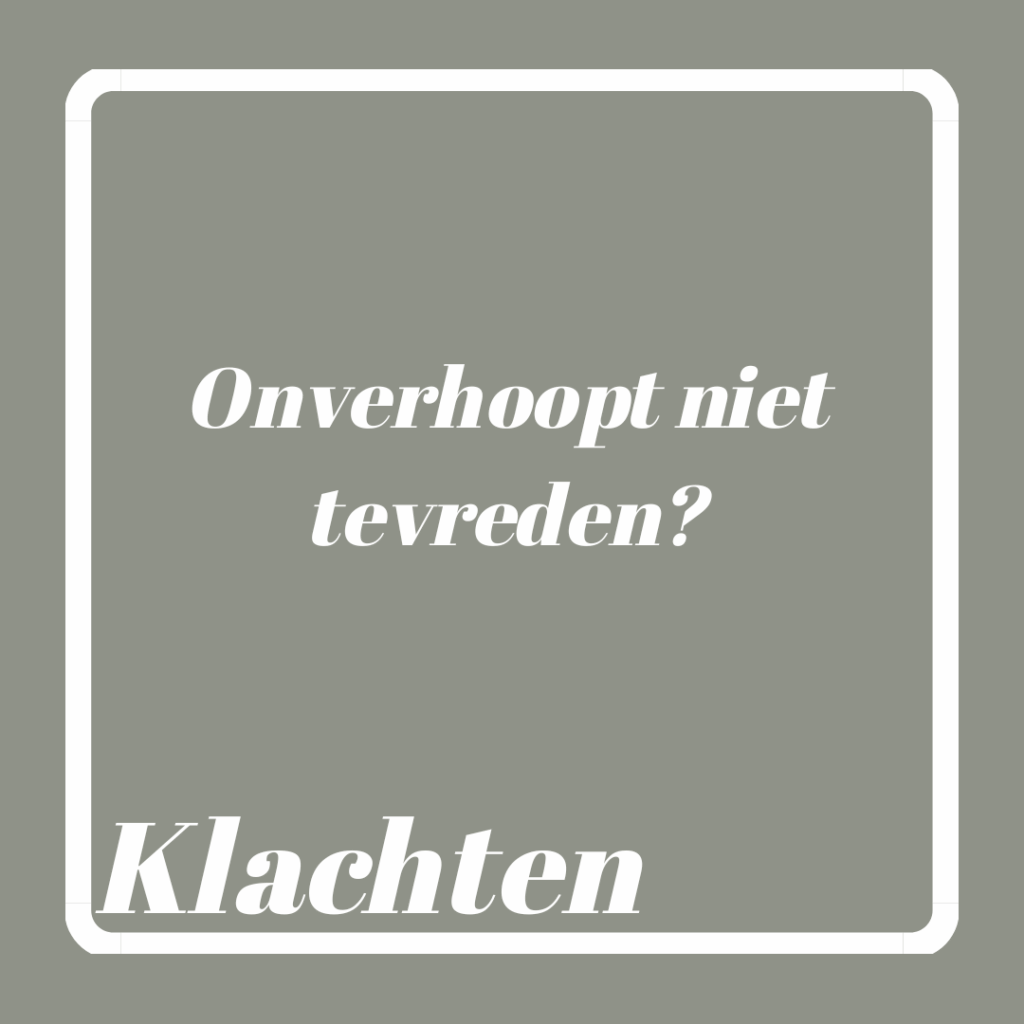 Ben je onverhoopt niet tevreden over een product of dienst welke wij hebben geleverd? Dat vinden we erg vervelend dus laat het ons graag weten! We verwijzen je graag naar onze klachtenprocedure zodat we samen tot de gewenste oplossing kunnen komen!